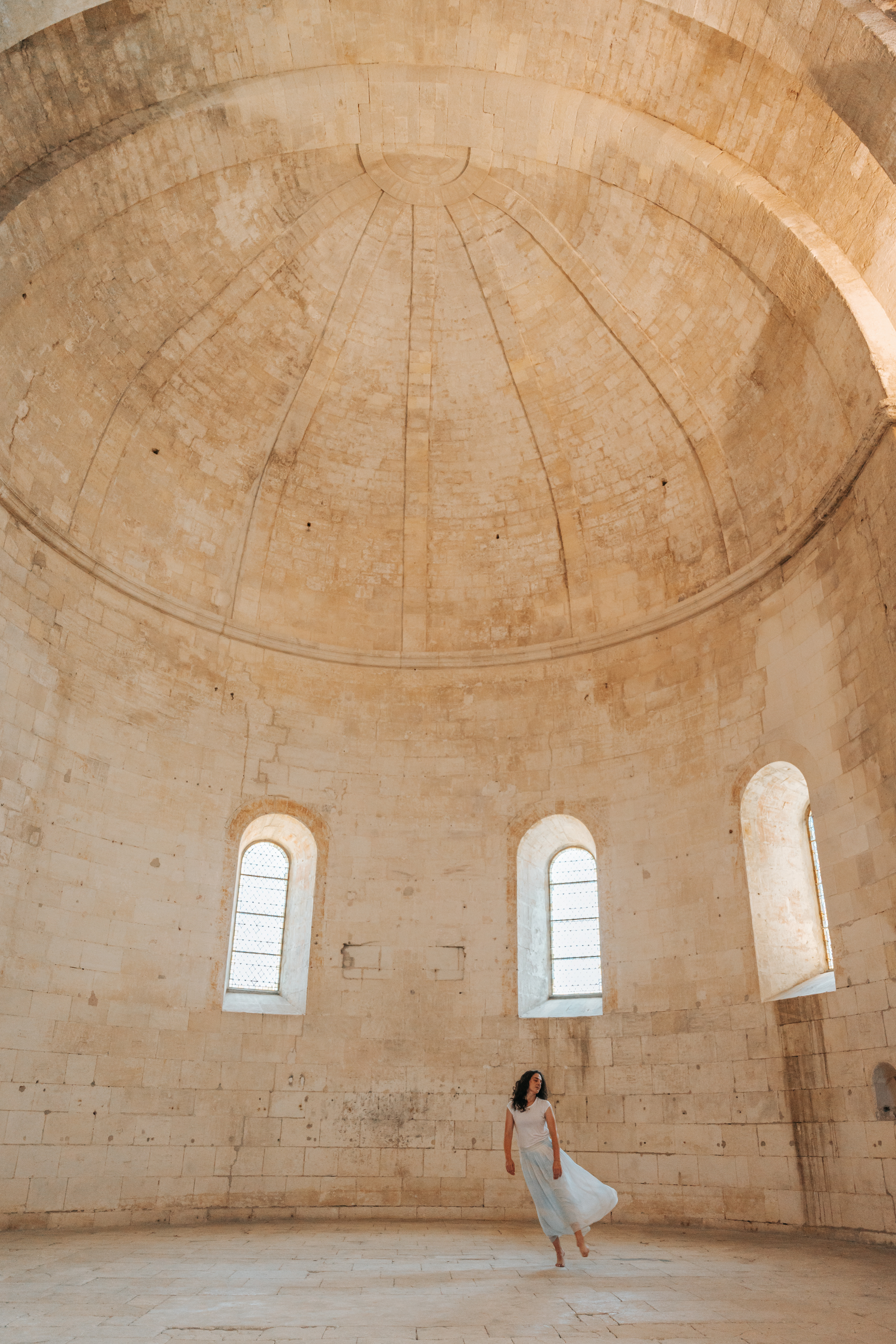 Les pas glissent entre lumière et matière